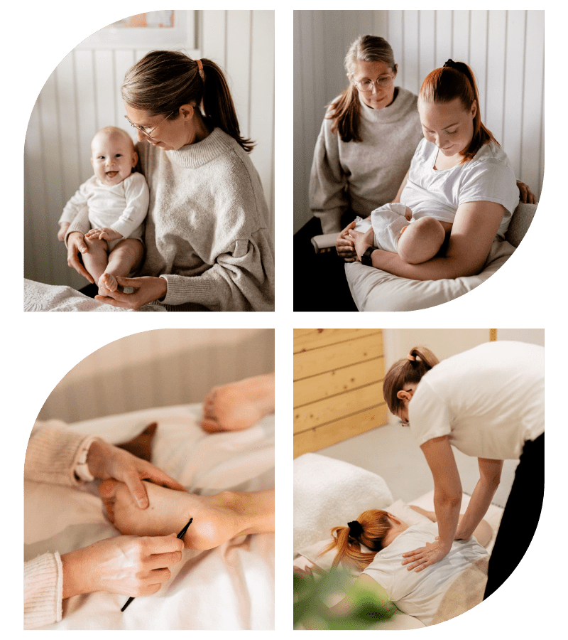 Rentouttavilla ja tasapainoittavilla raskauden aikaisilla vyöhyketerapiahoidoilla saa merkittävää apua mm. liitos- ja selkäkipuihin, suolisto-ongelmiin ja uniongelmiin sekä synnytyksen käynnistykseen lempeästi. Synnytyksen jälkeen vyöhyketerapialla voidaan edesauttaa kehon palautumista synnytyksestä, sekä auttaa vauvaa laajasti mm. saamalla helpotusta itkuisuuteen, huonoon nukkumiseen tai vatsa- ja suolistovaivoihin. Vyöhyketerapia soveltuu myös vanhemmille lapsille auttaen mm. uniongelmiin, vatsaoireisiin, sekä kehon jäykkyyksiin ja virheasentoihin. Tarjoan lisäksi imetysohjauksella apuja imetyksen sujumiseen mm. hyvän imetysasennon löytämisessä ja tehokkaan imuotteen saamisessa sekä sujuvaan pulloruokintaan. Teen myös vauvoille kieli- ja /tai huulijännetoimenpiteen jälkeisiä haavakontrolleja.
